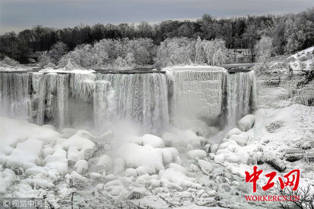 跨国尼亚加拉大瀑布遭“冰封” 冰瀑太美太壮观!