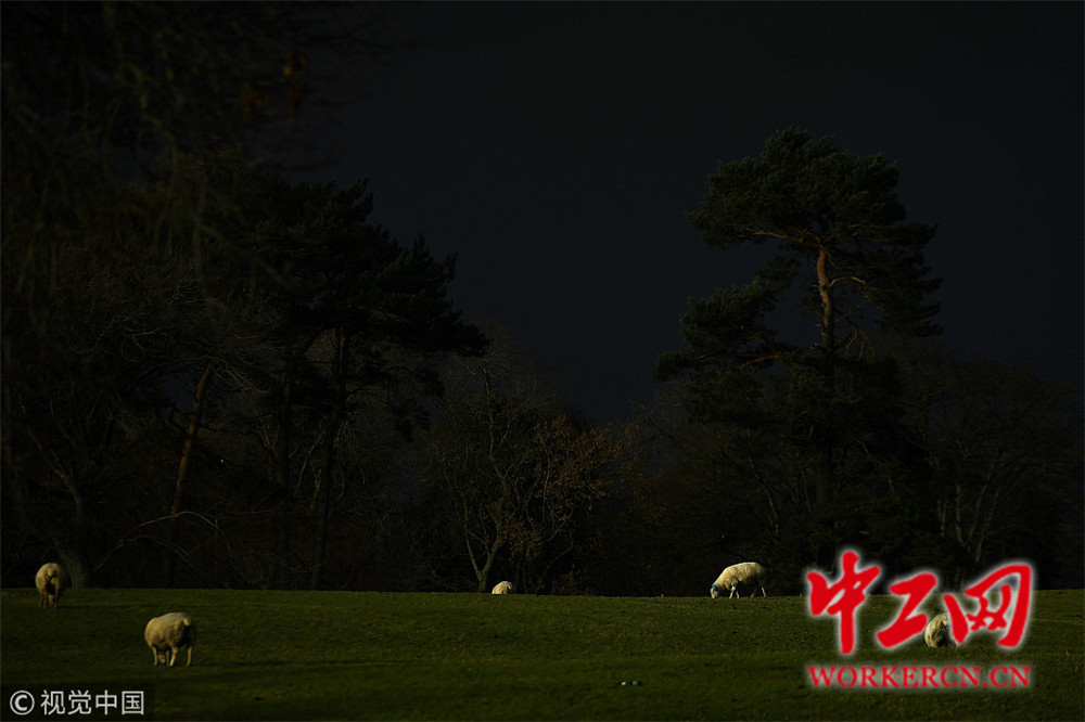 英国北爱尔兰大雪纷飞 乌鸦在雪地中瑟瑟发抖