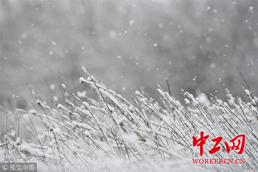 英国北爱尔兰大雪纷飞 乌鸦在雪地中瑟瑟发抖