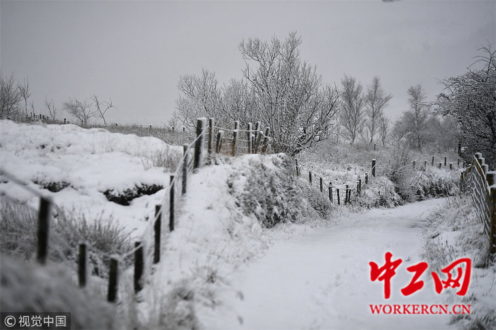 当地时间2019年1月22日,英国北爱尔兰 Glenshane Pass,大雪纷飞。