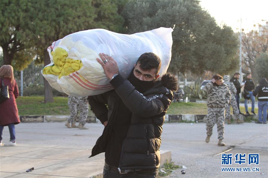 1月24日,在黎巴嫩北部城市的黎波里,一名叙利亚难民搬运行李,准备回国。新华社发(哈立德摄)