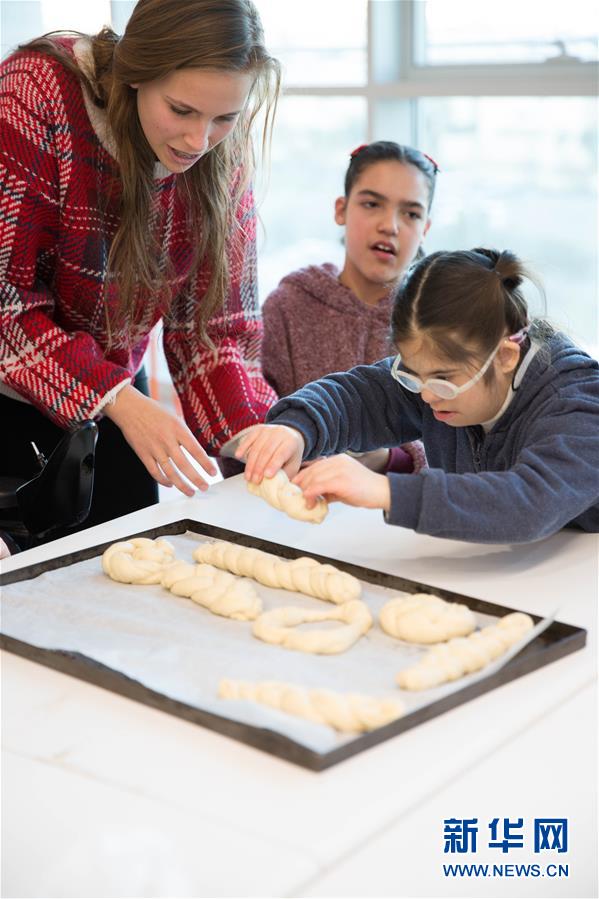 2019年1月10日,在耶路撒冷,孩子们在沙尔瓦中心学习制作面包。