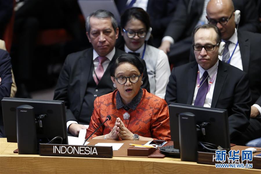 1月25日,在位于纽约的联合国总部,印尼外长蕾特诺出席安理会举行的气候灾害对国际和平与安全影响公开辩论会。 联合国安理会25日举行气候灾害对国际和平与安全影响公开辩论会。与会者呼吁积极采取行动,减缓气候变化速度,以有效应对气候变化造成的负面影响。 新华社记者 李木子 摄