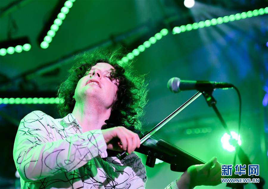 1月27日,在新西兰首都惠灵顿的花园音乐节上,一名乐手正在表演。 惠灵顿花园音乐节是新西兰首都一年一度的夏日音乐盛会。作为以文化和艺术著称的城市,惠灵顿每年伊始都会有持续三个月的系列文化活动,花园音乐节就是其中之一。今年的音乐节从1月8日至27日在惠灵顿植物园举行,超过20支乐队和民间艺术团体每日在此轮番表演。从黄昏到深夜,人们举家前来,一边野餐,一边观看各种风格的乐队现场演出。 新华社记者 郭磊 摄