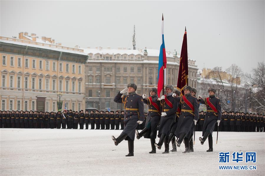 1月27日,士兵在俄罗斯圣彼得堡冬宫前广场上参加阅兵。 新华社发(莫京娜摄)