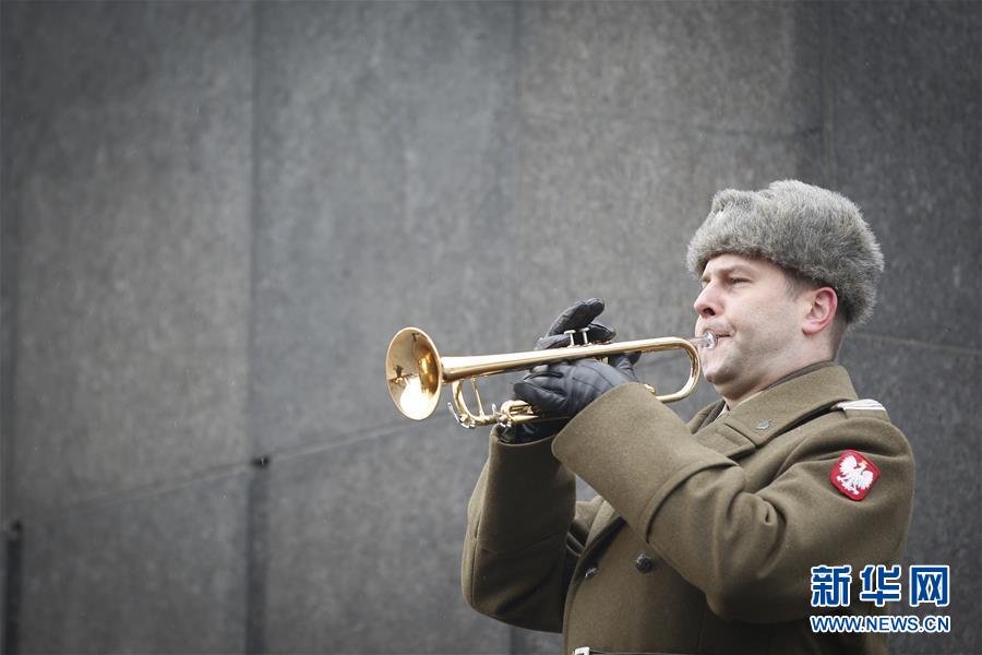 1月27日,在波兰华沙,士兵参加奥斯威辛集中营解放74周年纪念活动。