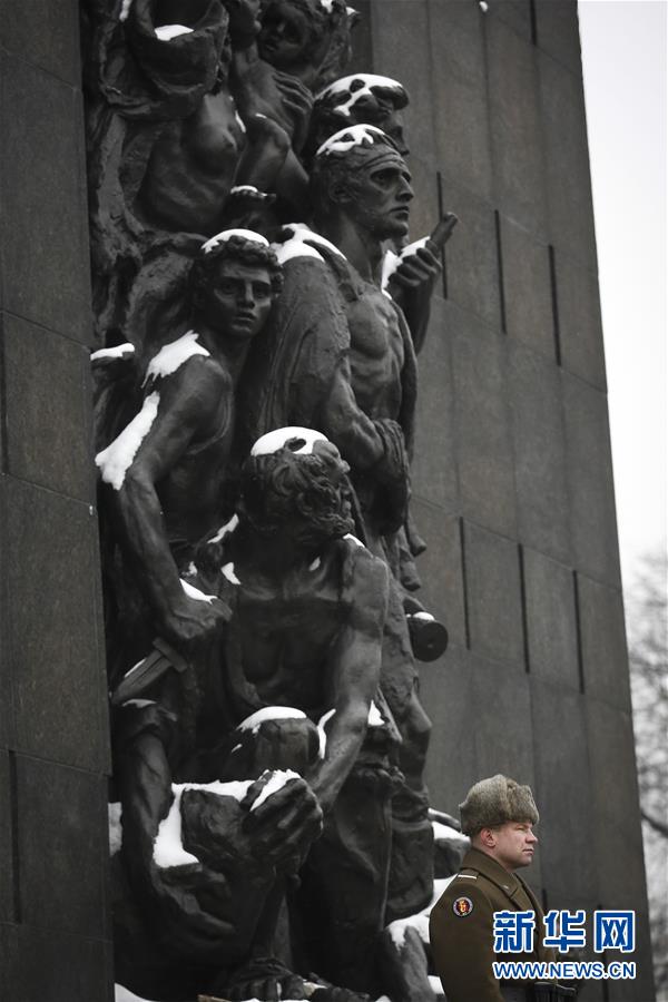 1月27日,在波兰华沙,士兵参加奥斯威辛集中营解放74周年纪念活动。