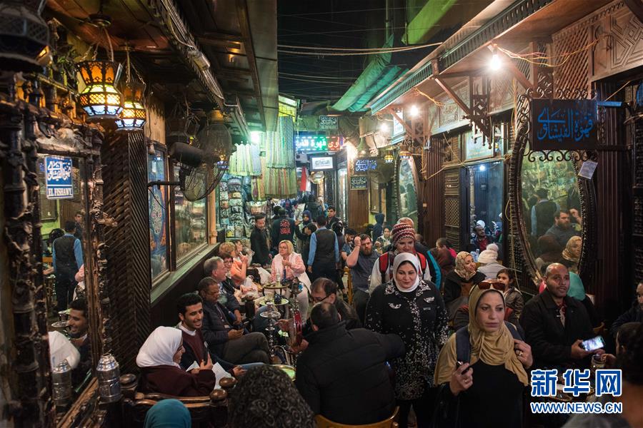 1月25日,埃及首都开罗,人们在费沙维咖啡馆享受休闲时光。新华社记者 孟涛摄