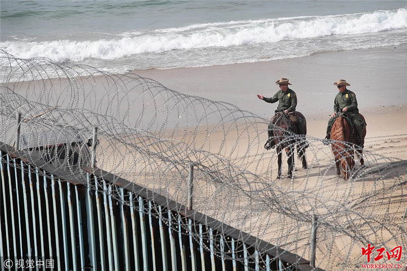 当地时间2019年1月28日,墨西哥蒂华纳,美墨边境围栏。