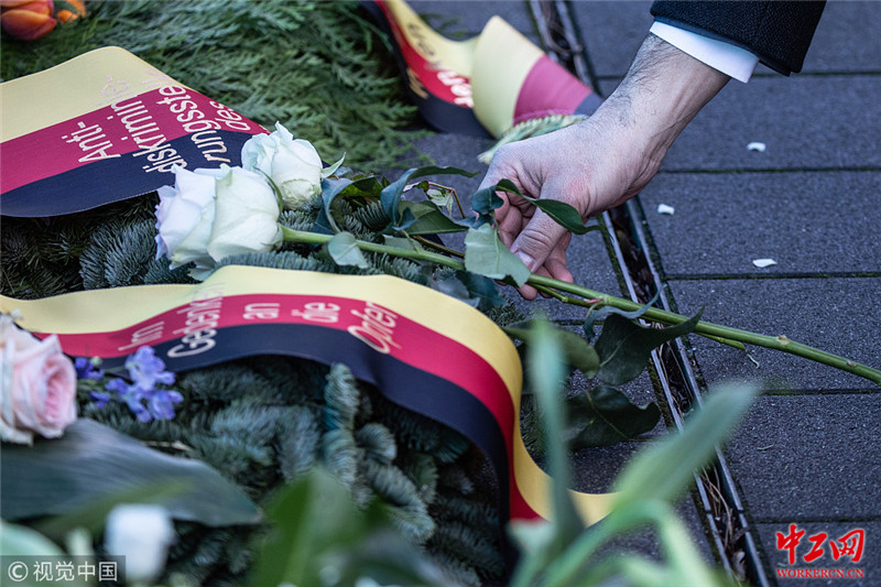 当地时间2019年1月28日,德国柏林,民众为在第二次世界大战期间被纳粹实施安乐死的受害者举行献花圈纪念仪式。