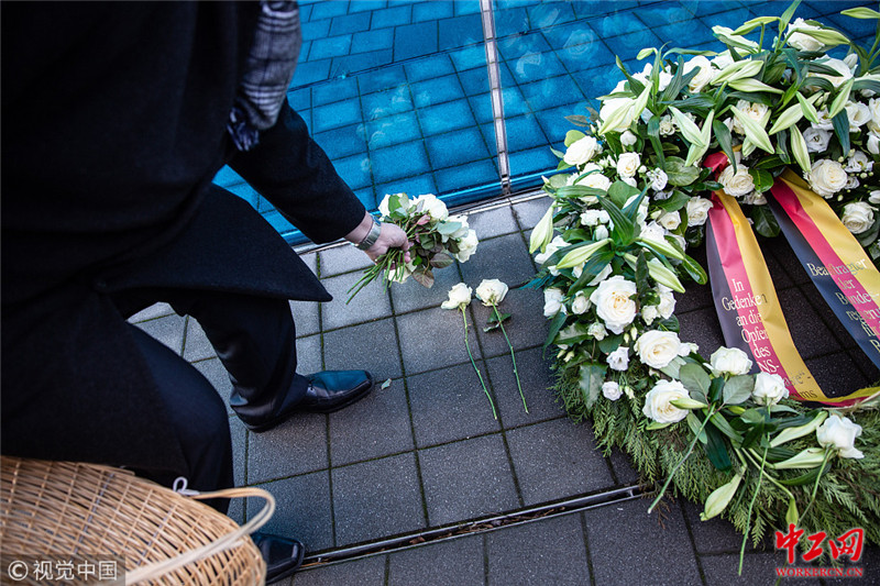 当地时间2019年1月28日,德国柏林,民众为在第二次世界大战期间被纳粹实施安乐死的受害者举行献花圈纪念仪式。