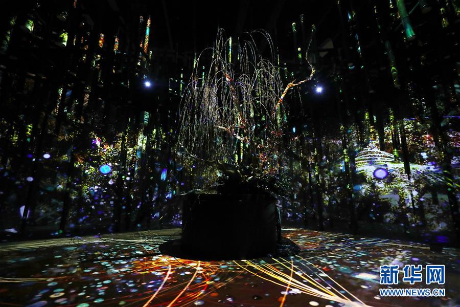 1月29日,在日本东京展览现场,投影照亮插花艺术展品。 当日,以“赏花”为主题的数字艺术展览在日本东京日本桥商圈内开幕。展览运用互动投影、3D影像等技术,在寒冬时节展示出繁花盛开的景象,吸引市民和游客前来观赏。 新华社记者杜潇逸摄