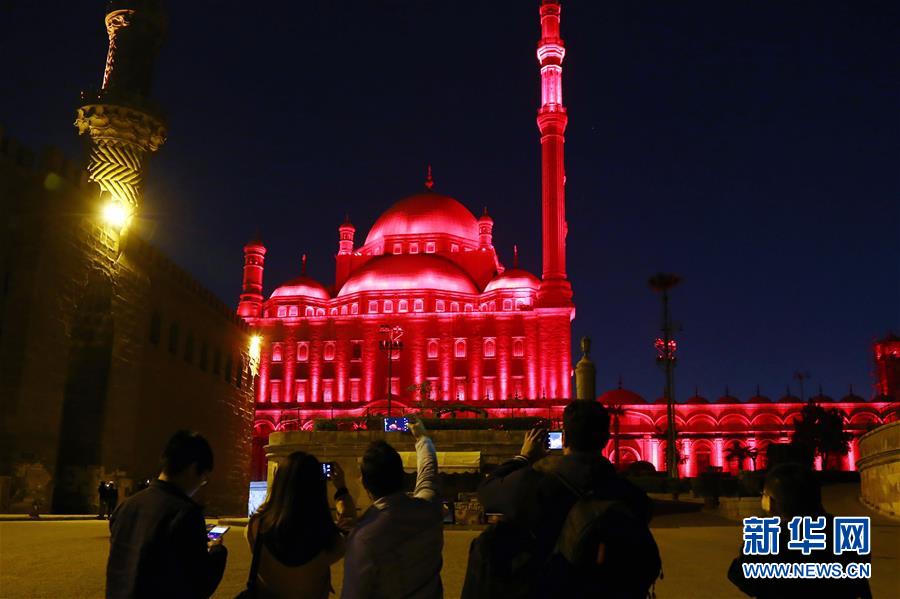 1月28日,在埃及首都开罗,观众拍摄亮起红色灯光的萨拉丁城堡。“中国红”点亮萨拉丁城堡暨2019春节交响音乐会当晚在开罗萨拉丁城堡举行,有着近千年历史的古堡首次亮起代表中国元素的红色灯光。 新华社发(艾哈迈德·戈马摄)