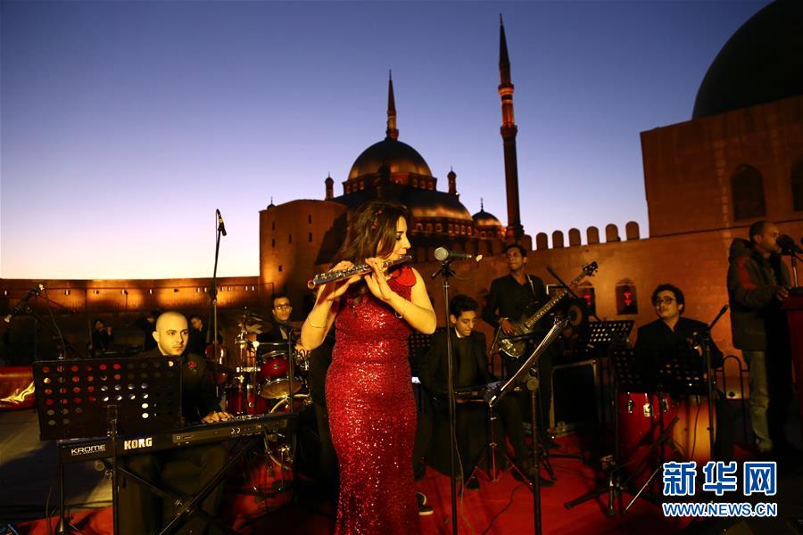 1月28日,在埃及首都开罗,艺术家在萨拉丁城堡前演奏乐曲。“中国红”点亮萨拉丁城堡暨2019春节交响音乐会当晚在开罗萨拉丁城堡举行,有着近千年历史的古堡首次亮起代表中国元素的红色灯光。 新华社发(艾哈迈德·戈马摄)