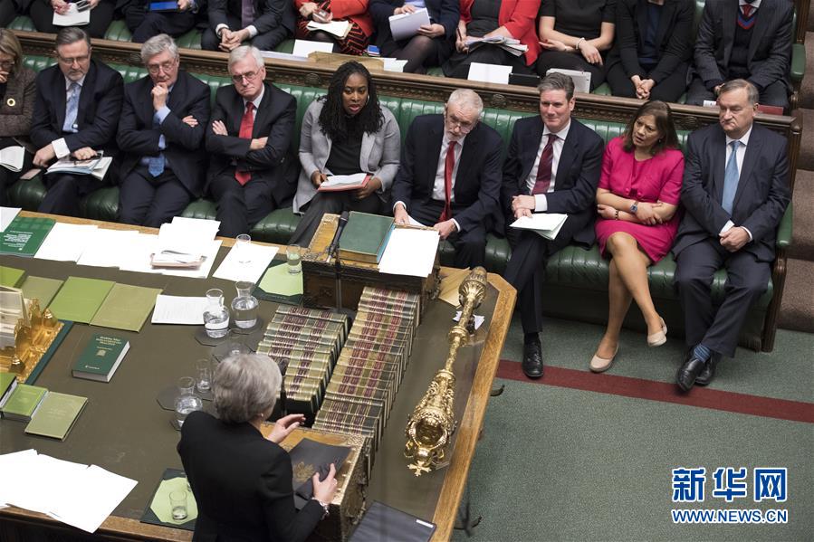 1月29日,在英国伦敦,英国首相特雷莎·梅(前)在议会下院进行辩论。新华社发(英国议会供图)