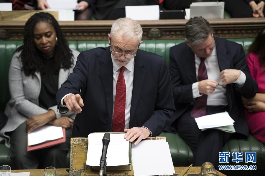 1月29日,在英国伦敦,英国工党领导人科尔宾(前)在议会下院进行辩论。新华社发(英国议会供图)