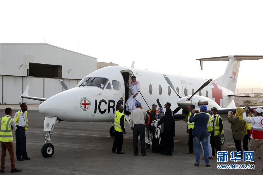 1月29日,在也门萨那机场,被释放的沙特阿拉伯籍战俘登上飞机。 新华社发(穆罕默德摄)