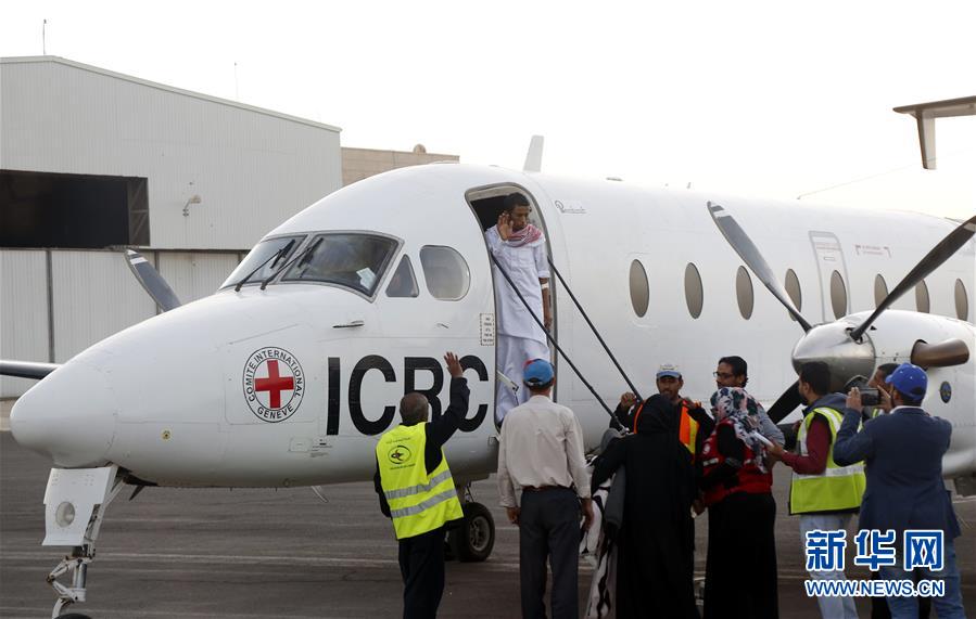 1月29日,在也门萨那机场,被释放的沙特阿拉伯籍战俘登上飞机。 新华社发(穆罕默德摄)