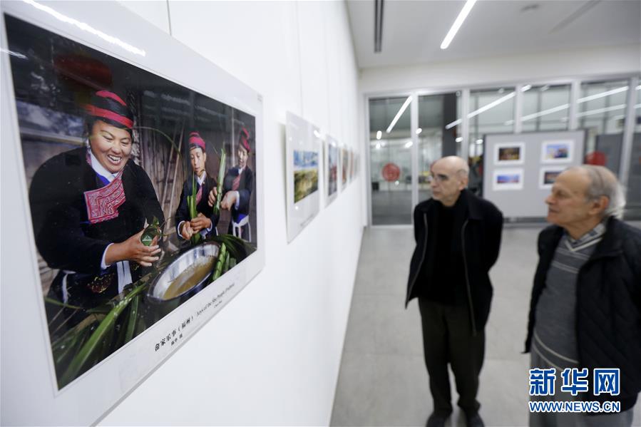 1月30日,在黎巴嫩首都贝鲁特,人们观看中国图片展。新华社发(比拉尔·贾维希摄)