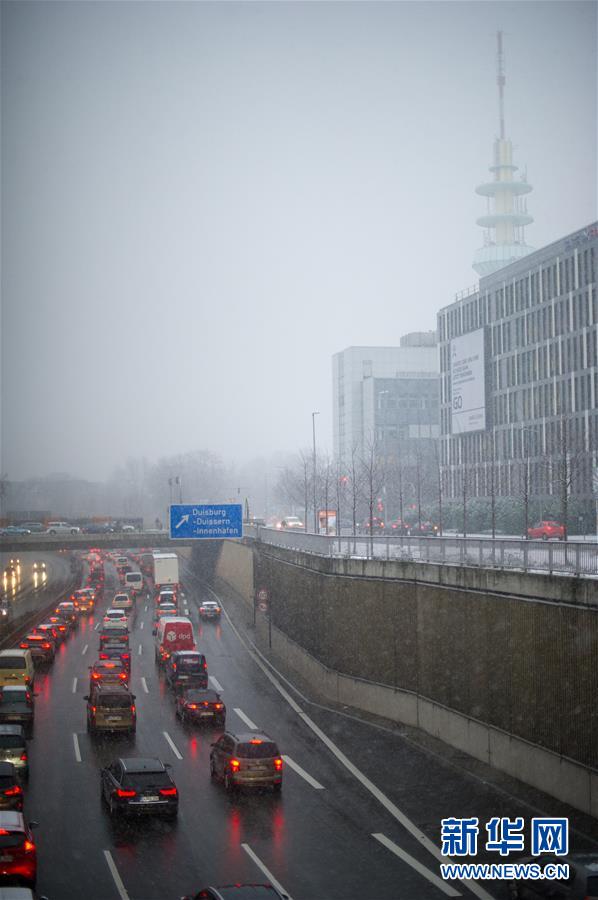这是1月30日在德国杜伊斯堡拍摄的雪中街景。 当日,德国西部城市杜伊斯堡迎来降雪。 新华社记者 连振 摄