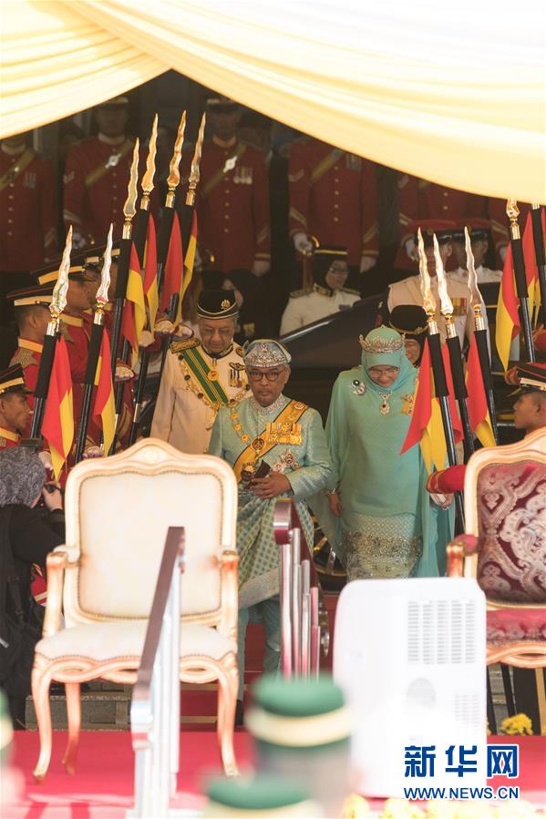 1月31日,在马来西亚吉隆坡,彭亨州苏丹阿卜杜拉·苏丹艾哈迈德·沙阿(中)出席国会欢迎仪式。 当日,彭亨州苏丹阿卜杜拉·苏丹艾哈迈德·沙阿就任马来西亚最高元首。 新华社记者朱炜摄