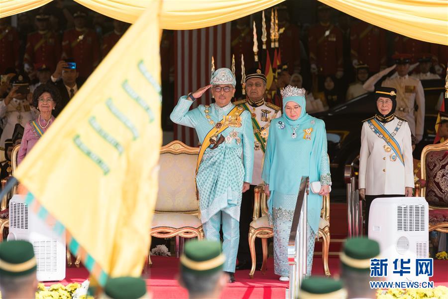 1月31日,在马来西亚吉隆坡,彭亨州苏丹阿卜杜拉·苏丹艾哈迈德·沙阿(前左)出席国会欢迎仪式。 当日,彭亨州苏丹阿卜杜拉·苏丹艾哈迈德·沙阿就任马来西亚最高元首。 新华社记者朱炜摄