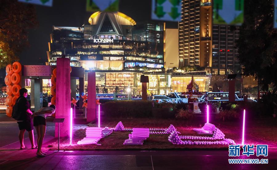 1月30日,在泰国曼谷,人们参观曼谷设计周上的光影艺术装置。 一年一度的曼谷设计周1月26日至2月3日在泰国首都曼谷举行。 新华社记者 张可任 摄