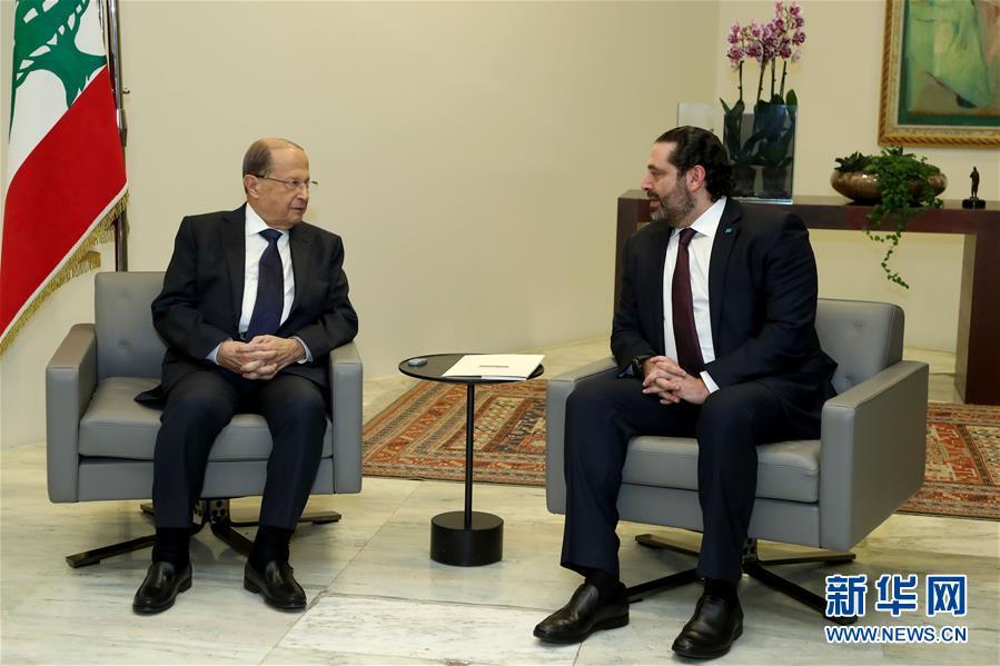 1月31日,在黎巴嫩首都贝鲁特总统府,黎巴嫩总统米歇尔⋅奥恩(左)与总理萨阿德⋅哈里里讨论组阁事宜。 黎巴嫩新一届内阁31日组建完成,萨阿德⋅哈里里再次出任总理。 新华社发(比拉尔⋅贾维希摄)