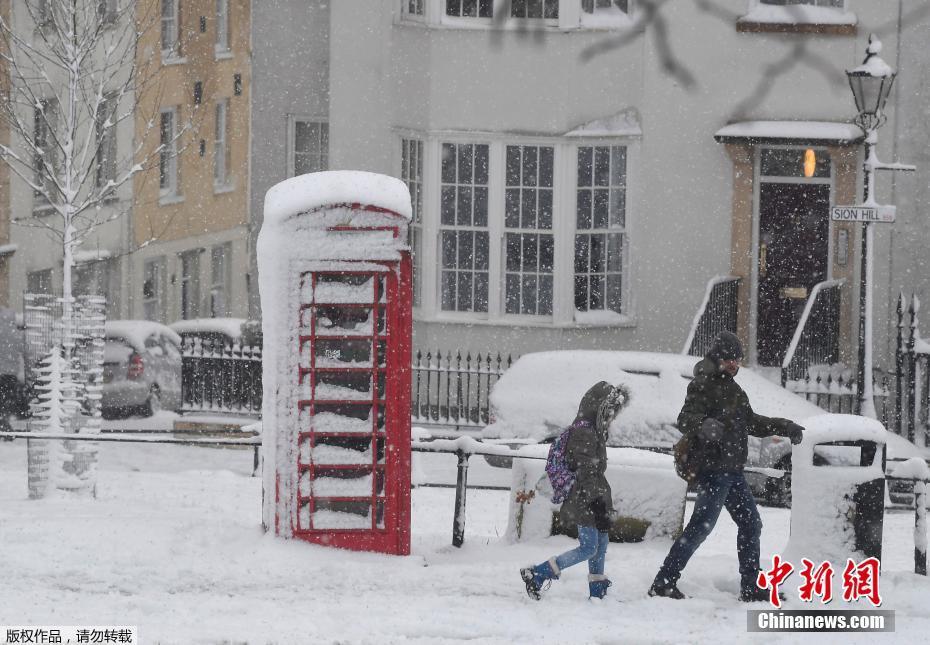 当地时间2月1日,英国迎来降雪天气,大地一片银装素裹。图为民众在英国布里斯托尔大雪中出行。