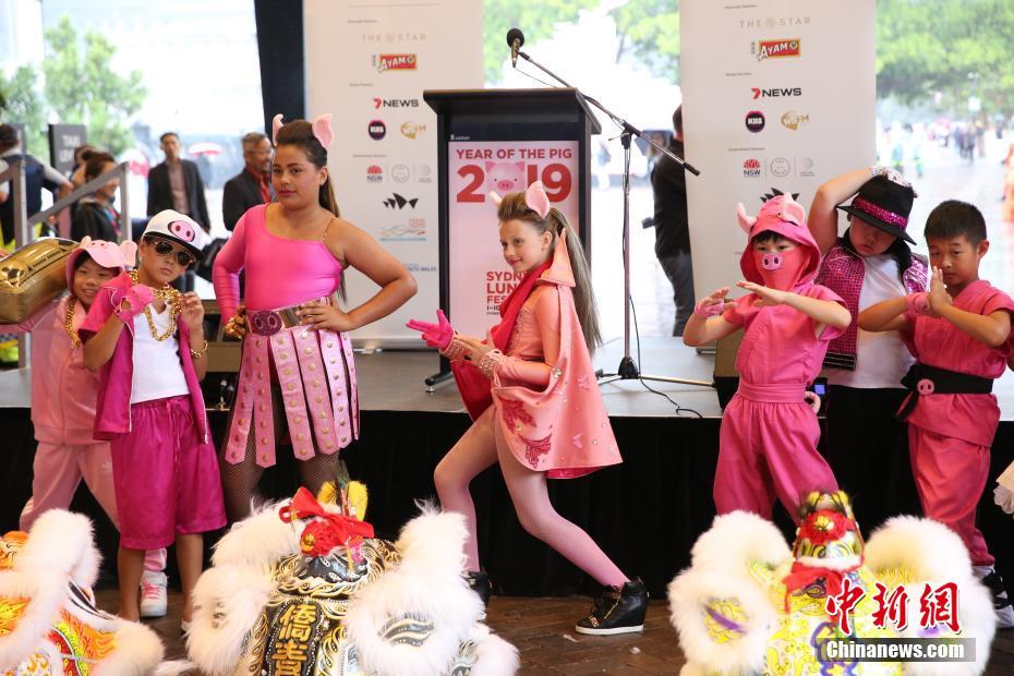 2月1日傍晚,悉尼农历节(Sydney Lunar Festival)拉开帷幕。图为扮成可爱小猪的小朋友载歌载舞,向市民、游客恭贺猪年的到来。中新社记者 陶社兰 摄