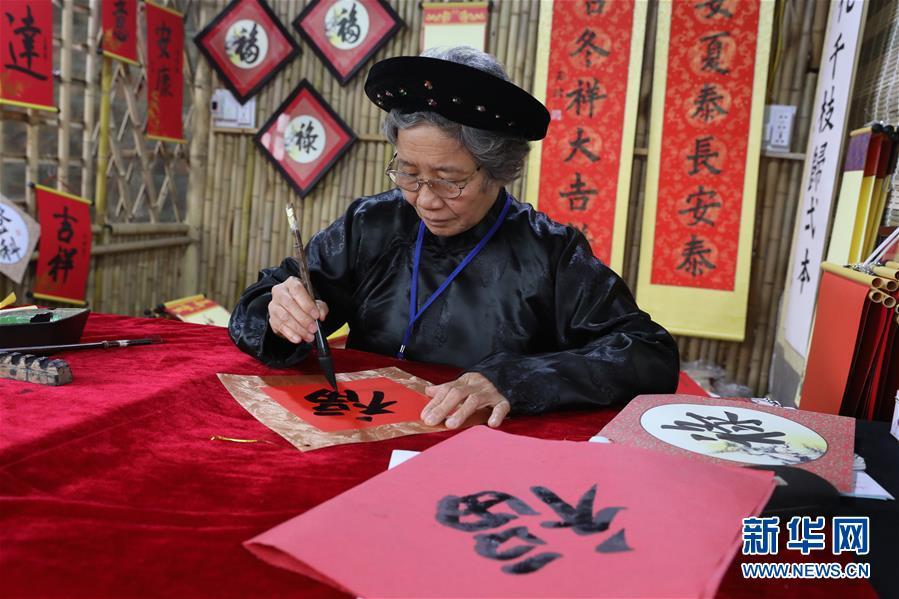2月1日,在越南首都河内,一位老人写“福”字。 新华社记者 王迪 摄