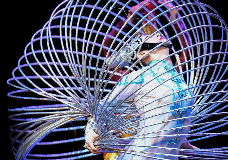 2月2日,在新西兰奥克兰,一名中国济南杂技团演员在“新春花市同乐日”活动上表演。