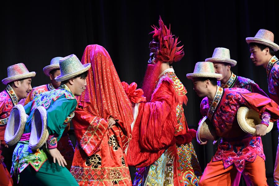2月2日,在新西兰奥克兰,中国济南杂技团演员在“新春花市同乐日”活动上表演。