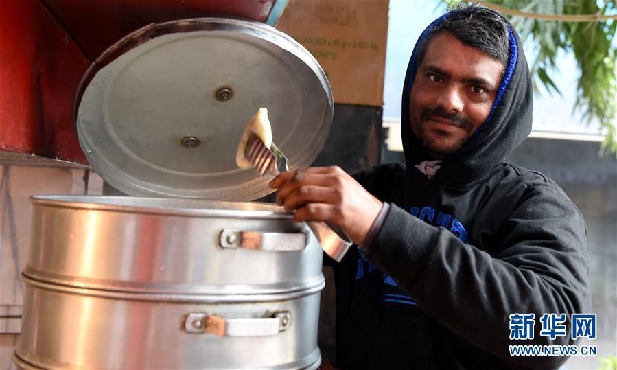 2月2日,在印度首都新德里一处街边小吃摊,一名男子展示蒸熟的饺子。 印度街头的饺子摊很受民众喜爱,这里售卖的饺子多以素馅为主,洋白菜、鸡蛋和辣椒是主料,蒸熟后再佐以咖喱食用。每8个饺子为一份,价格约为人民币五元。 新华社记者 张迺杰 摄