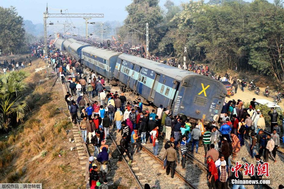当地时间2月3日,印度比尔哈邦巴特那,一列驶往新德里的火车在距离比尔哈邦巴特那市北部30公里处发生脱轨事故,救援人员在现场搜寻幸存者。事故现场围满当地居民。事故原因还在调查中。