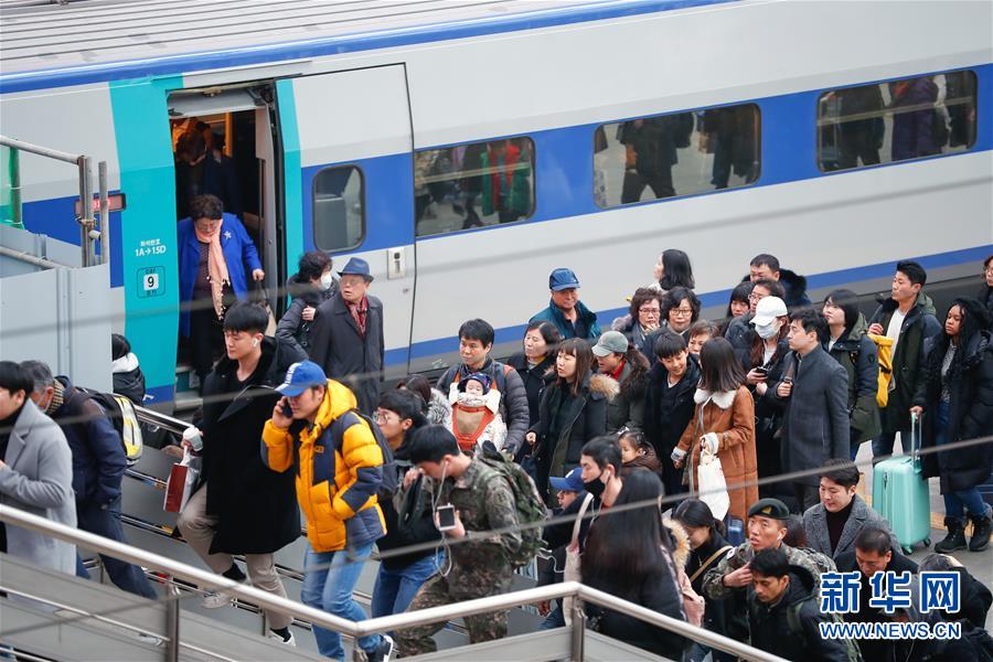 2月2日,在韩国首尔火车站,刚刚抵达首尔的乘客排队乘坐电梯。 新华社记者 王婧嫱 摄