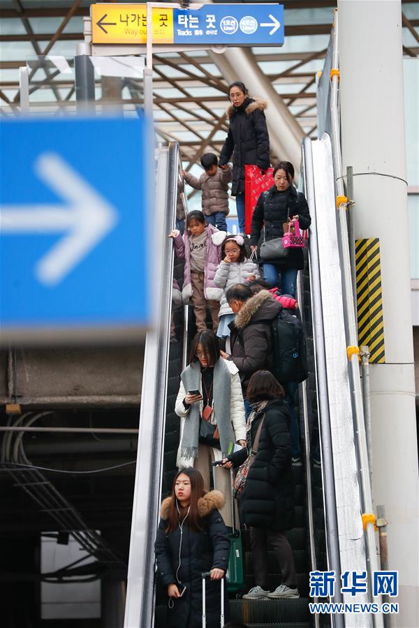 2月2日,在韩国首尔火车站,人们准备乘坐火车。 新华社记者 王婧嫱 摄