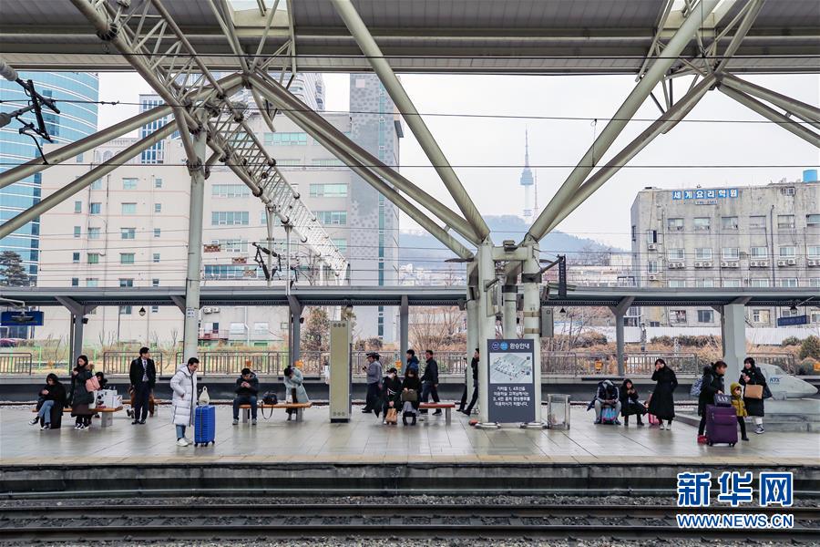 2月2日,在韩国首尔火车站,人们在站台上候车。 新华社记者 王婧嫱 摄
