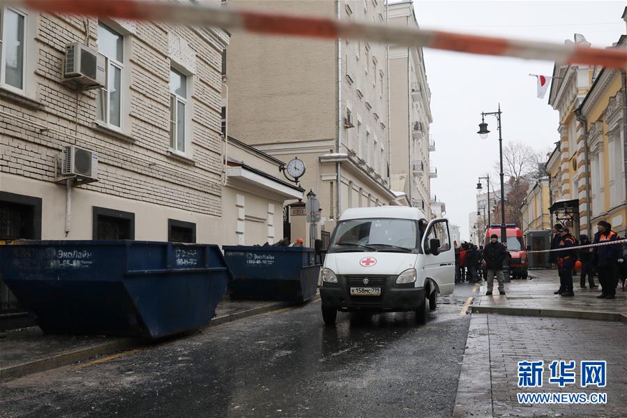 2月4日,在俄罗斯首都莫斯科,发生火灾的居民楼附近拉起了警戒线。 新华社记者白雪骐摄