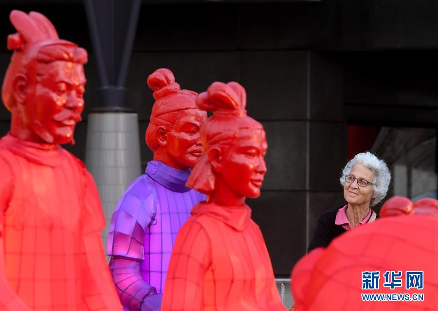 新西兰:兵马俑造型彩灯点亮惠灵顿