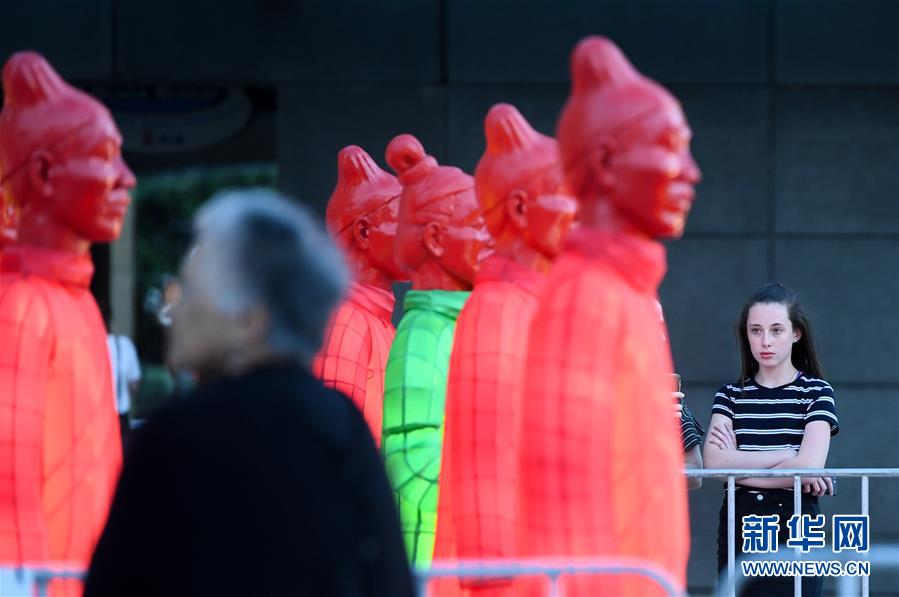 新西兰:兵马俑造型彩灯点亮惠灵顿