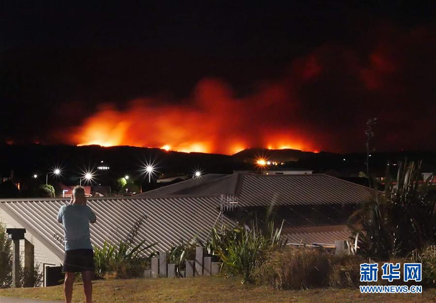 2月6日,在新西兰南岛北部,一名居民拍摄火情。 新华社发