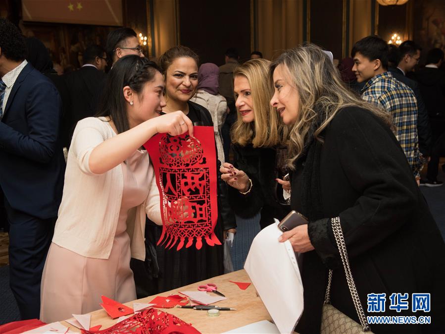在中国农历新年到来之际,我驻外使领馆纷纷举办新春招待会,以形式多样的活动与身在全球各地的同胞和国际友人共庆新春佳节、共享喜庆祥和、共期美好未来。 这是1月28日,在埃及亚历山大市,人们在中国驻亚历山大总领馆举办的新春招待会上了解中国传统剪纸艺术。 新华社记者孟涛摄