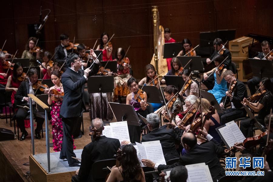 2月6日,在美国纽约林肯中心举行的纽约爱乐乐团第八届中国新年音乐会上,音乐家演奏《火祭》。 新华社记者 王迎 摄