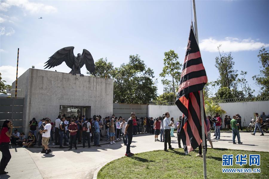 2月8日,在巴西里约热内卢州的巴西弗拉门戈俱乐部足球训练基地外,媒体在门口采访。 巴西里约热内卢州消防部门8日说,巴西弗拉门戈俱乐部足球训练基地当天凌晨发生火灾,至少造成10人死亡、3人受伤。 新华社记者 李明 摄