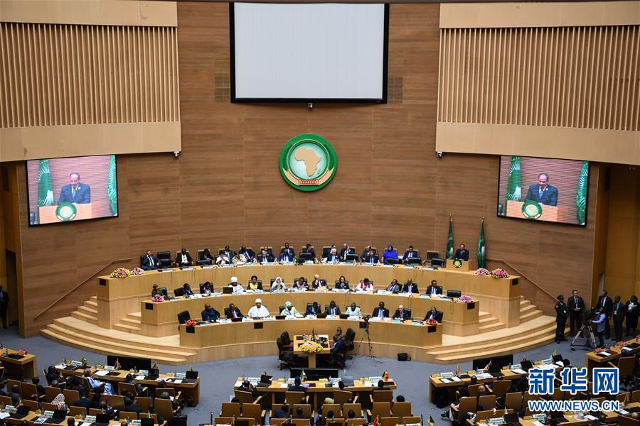 这是2月10日在埃塞俄比亚首都亚的斯亚贝巴拍摄的非盟第32届首脑会议现场。 非洲联盟(非盟)第32届首脑会议10日在位于埃塞俄比亚首都亚的斯亚贝巴的非盟总部开幕,会议将重点讨论难民等问题。 新华社记者 李琰 摄