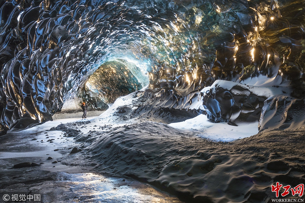 2019年2月11日讯(具体拍摄时间不详),摄影师James Rushforth探秘冰岛布雷埃莫尔库尔冰川下的冰洞。这些神奇的洞穴由夏季冰川融水冲刷而成,只有在11月到3月之间才能进入,因为此时的气温低到足以使穴壁凝固,比较安全。