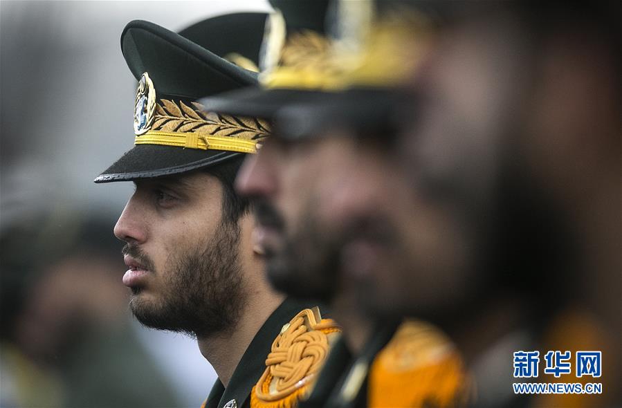 2月11日,在伊朗德黑兰,士兵在伊朗伊斯兰革命胜利40周年纪念活动上警戒。