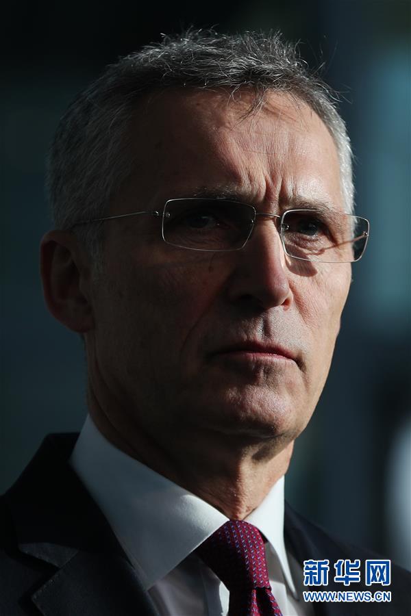 2月13日,北约秘书长斯托尔滕贝格在比利时布鲁塞尔的北约总部回答记者提问。 北约国防部长会议当天在位于比利时首都布鲁塞尔的北约总部举行。 新华社记者郑焕松摄