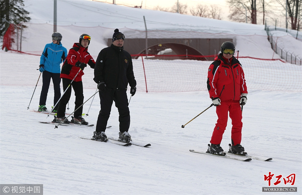2019年2月13日,俄罗斯索契,俄罗斯总统与白俄罗斯总统滑雪。